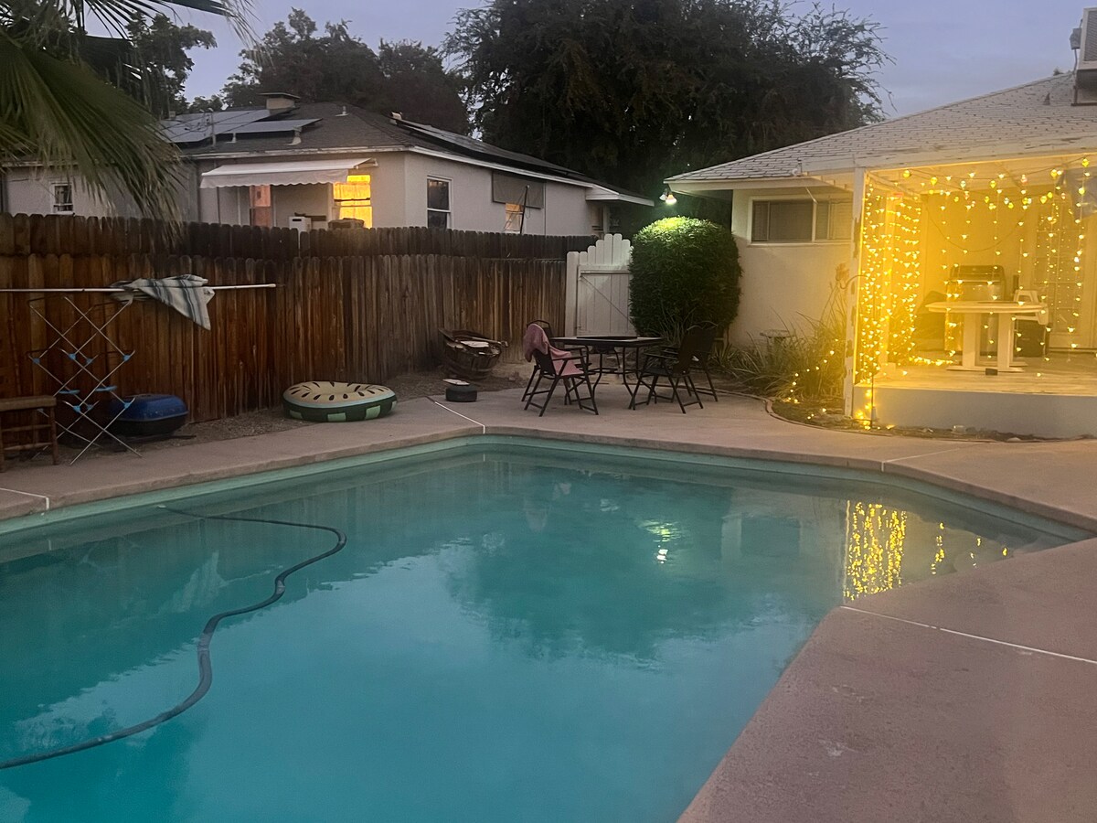 Welcome to your vibrant Boho oasis in Bakersfield! This beautifully remodeled three-bedroom home features an inviting open-concept living space electric decor with espresso bar. The expansive backyard boasts a huge pool, fire pit and tiki bar perfect for sun-soaked days relaxing by the pool. Each bedroom offers unique charm, ensuring comfort for all guests. Conveniently located off Calloway, you’re minutes away from the city's hottest spots. Enjoy relaxation and fun in this colorful retreat.