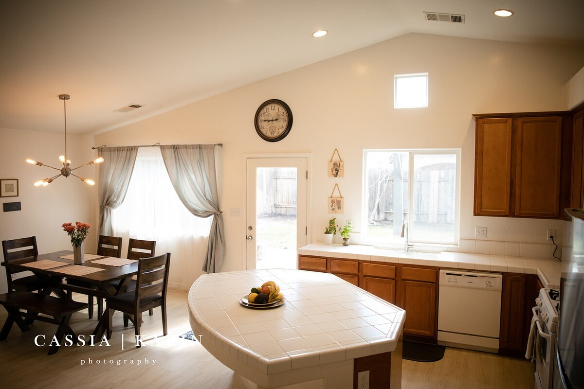 *New Listing* Newly renovated, peaceful, clean home with new kitchen appliances and all new furniture. 3 BR/2 BA, private large backyard, 2 car garage, A/C, laundry room. High speed WIFI, 4k HD smart tv, complementary coffee & tea. Business or pleasure... this house has all the amenities you need. You are guaranteed a clean house with fresh linens, pillowcases & towels. Guests have access to parking in the garage, driveway and street. Close to freeway, park, shopping centers and restaurants.
