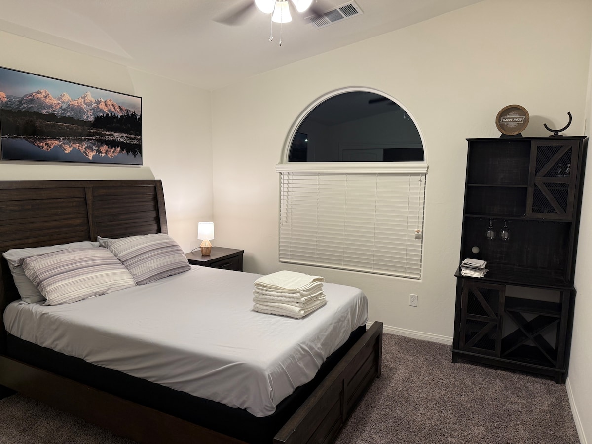 PRIVATE SUITE BETTER THAN A HOTEL! Please make sure you read the house rules prior to booking! ▪️Private space, private bathroom, and private entrance similar to a hotel suite ▪️ Perfect space for 2 guests (max on property) no small children please ▪️Incredibly safe neighborhood in secluded cul-de-sac ▪️Large RV parking with 24hr motion recording cameras ◾️ Level 2 EV Charger 48 Amp (with fee). ▪️Large balcony with table, chairs, umbrella, and gas fire ▪️In room controlled quiet A/C and heater