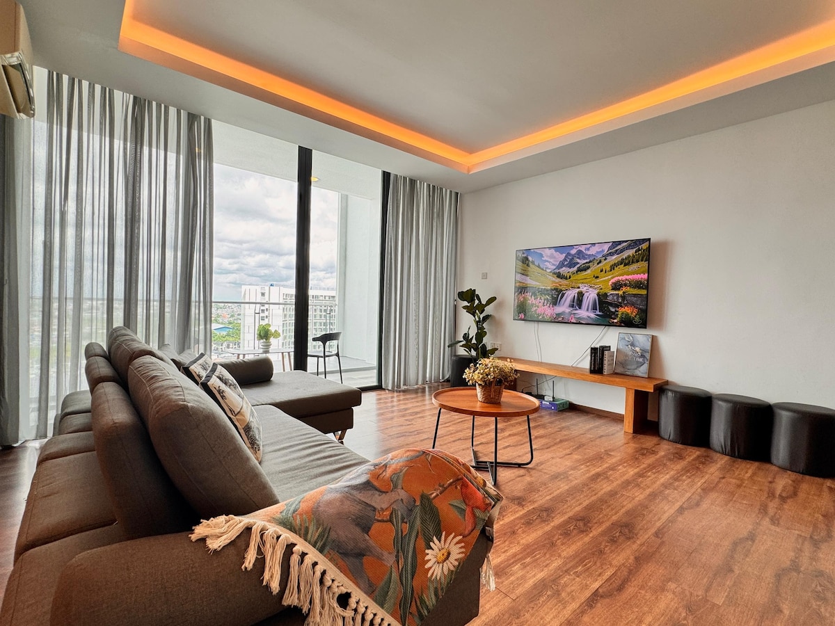 Jazz Suites 3 Vivacity, On top of Kuching City's largest shopping mall. 7th Floor City and Airport View. Unit's highlight. 1. CUCKOO water purifier 2. Laundry Dryer 3. Comfortable Bedding, Spring mattresses with duvets 4. 55" Smart Tv with EvPad3 5. Full Kitchen with Hood, Hob, rice cooker and microwave. 6. Towels provided 7. Full essential amenities such as Shampoo, tissues, toilet roll. 8. City View. Facing Airport 9. Fabreeze and Dettol spray after each check out