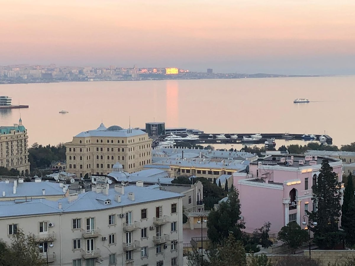 В самом Центре города со свежим ремонтом и замечательным видом на Старый город и площадь Фонтанов. Самое удобное месторасположение в Баку! Бесплатный трансфер при брони от 10 дней