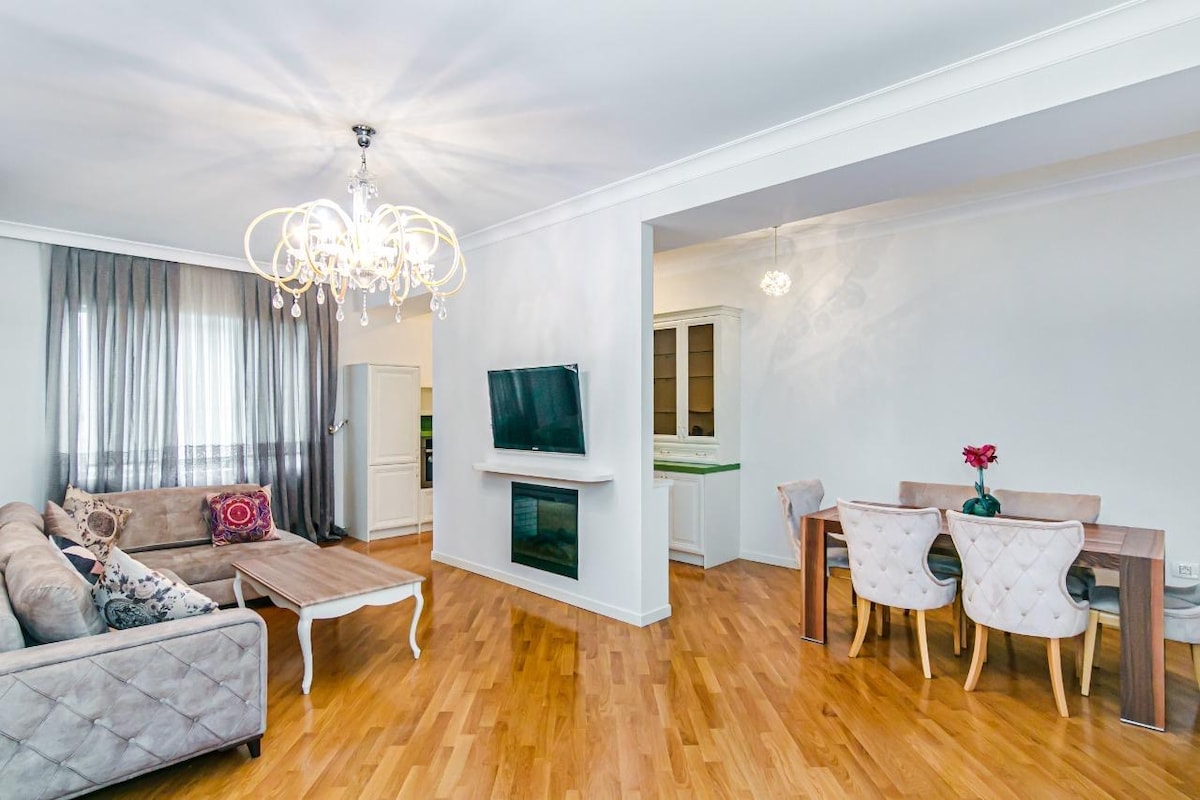 Enjoy a stylish experience at this centrally-located place.apartment has 1 bedroom 1 living room full equipment kitchen and bathroom. There are 2 split air cond. there is heather system.free wifi Tv smart box.there is no an elevator but easy to come up because apartment in the second floor. I mean ground ,first and second. The location is perfect. It is in fountain square Nizami. Walkable distance from Old City and Seaside 3-4minute . Every activities are very close.
