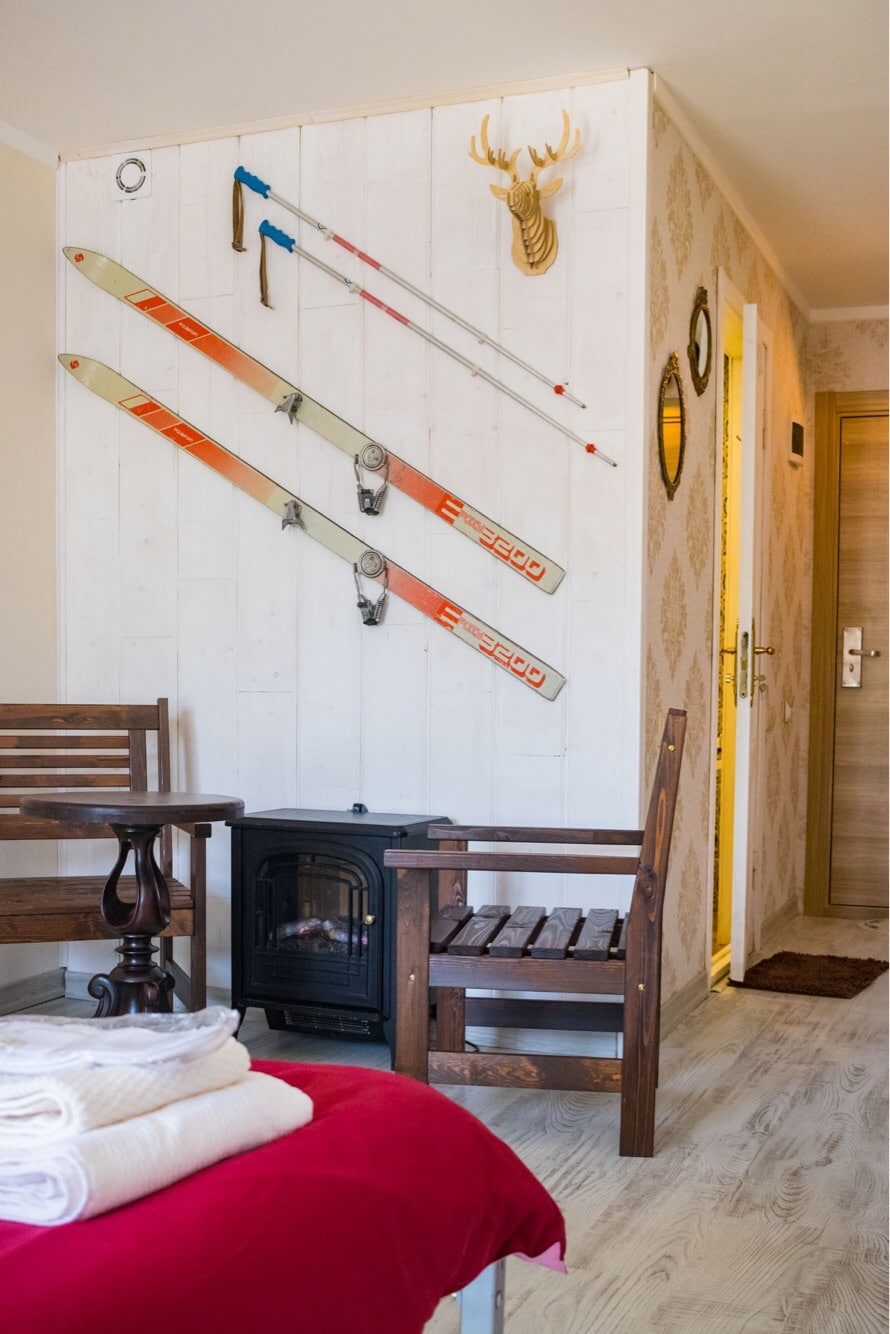 There are several ski slopes nearby, both for beginners and experienced skiers (Didveli, Tatra, Kokhta). There is a ski lift with its own ski slope, an ice rink, a SPA complex, a swimming pool, a gym, restaurants, ski rental on the territory of the complex. There is a Crystal Park equipped with special pedestrian paths in the central area of the complex and a stadium in the upper part of the park. It is great to have a rest both in winter and in summer, surrounded by a coniferous forest.