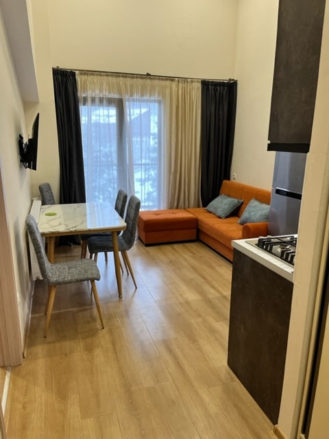 ●Park Residence complex 35 sq.m studio. Our Studio Triple Apartments offer Beds with comfortable 1 Queen+1 Sofa. ●The studio triple apartment also offers an ensuite bathroom with shower and toilet. ●Fully equipped kitchens make dining easy with full tea and coffee making facilities, fridge and freezer, microwave and washing machine. All cooking utensils and cutlery are supplied. ●Close to the apartments are supermarkets, pharmacies. ●The best holiday apartment in the center of Bakuriani.