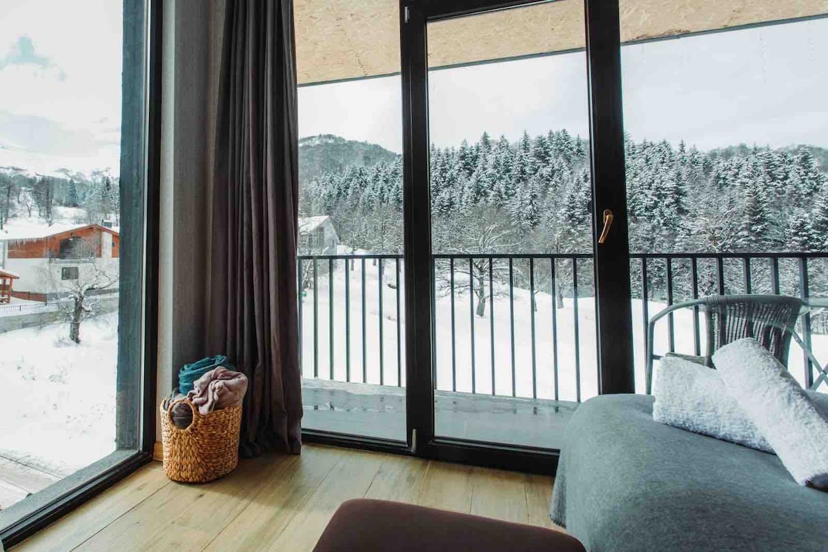 Ski and sleep in the beautiful apartment with even more beautiful view. Clean, bright, cozy and comfortable place, 500 meters from Didveli ski lift. 3 guests (maximum 4) place, 33 square meters, with Balcony, kitchen area and bathroom offering all necessary amenities for your comfortable stay
