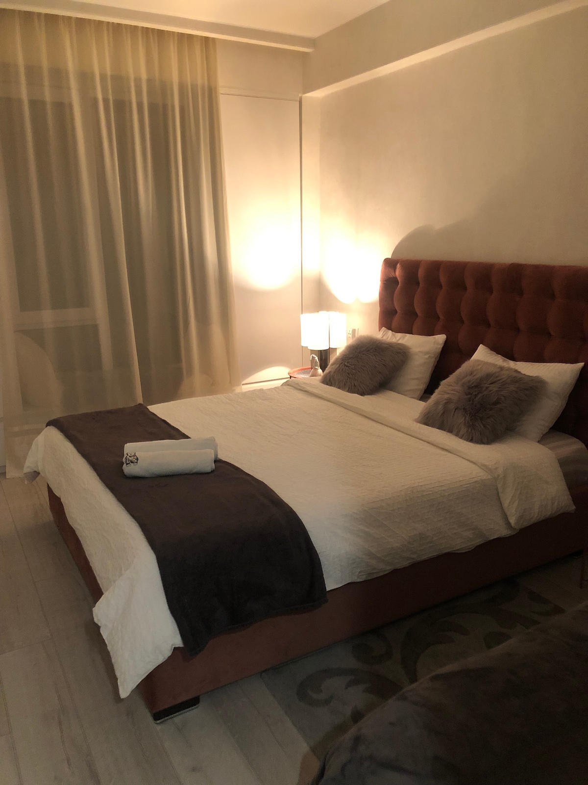 ●Park Residence complex 35 sq.m studio. Our Studio Triple Apartments offer Beds with comfortable 1 Queen+1 Sofa. ●The studio triple apartment also offers an ensuite bathroom with shower and toilet. ●Fully equipped kitchens make dining easy with full tea and coffee making facilities, fridge and freezer, microwave and washing machine. All cooking utensils and cutlery are supplied. ●Close to the apartments are supermarkets, pharmacies. ●The best holiday apartment in the center of Bakuriani.