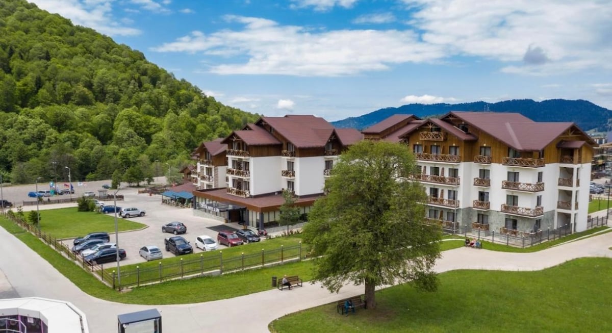 There are several ski slopes nearby, both for beginners and experienced skiers (Didveli, Tatra, Kokhta). There is a ski lift with its own ski slope, an ice rink, a SPA complex, a swimming pool, a gym, restaurants, ski rental on the territory of the complex. There is a Crystal Park equipped with special pedestrian paths in the central area of the complex and a stadium in the upper part of the park. It is great to have a rest both in winter and in summer, surrounded by a coniferous forest.