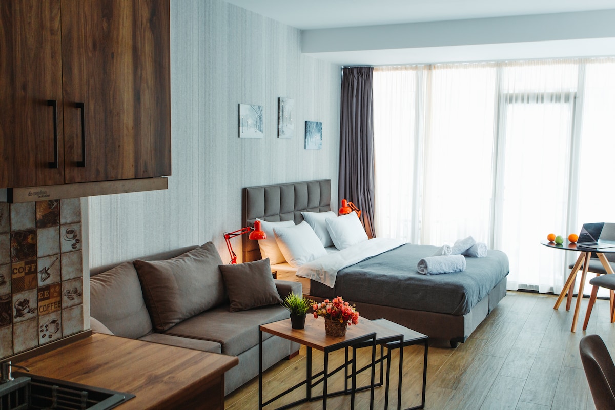 You will enjoy easy access to everything from centrally located 4 star hotel. Just around are nice parks, forest zone for fresh air and it’s 3 minutes walk from winter the best winter olympic 2023 skiing spot Didveli with cable cars. 40sq.m apartment is Studio style with a big balcony. Beds have linens, towels, there are all dishes needed and a toaster, kettle, washing machine. The flat is on the 4th floor with a perfect view. Pool is out of service temporarily.