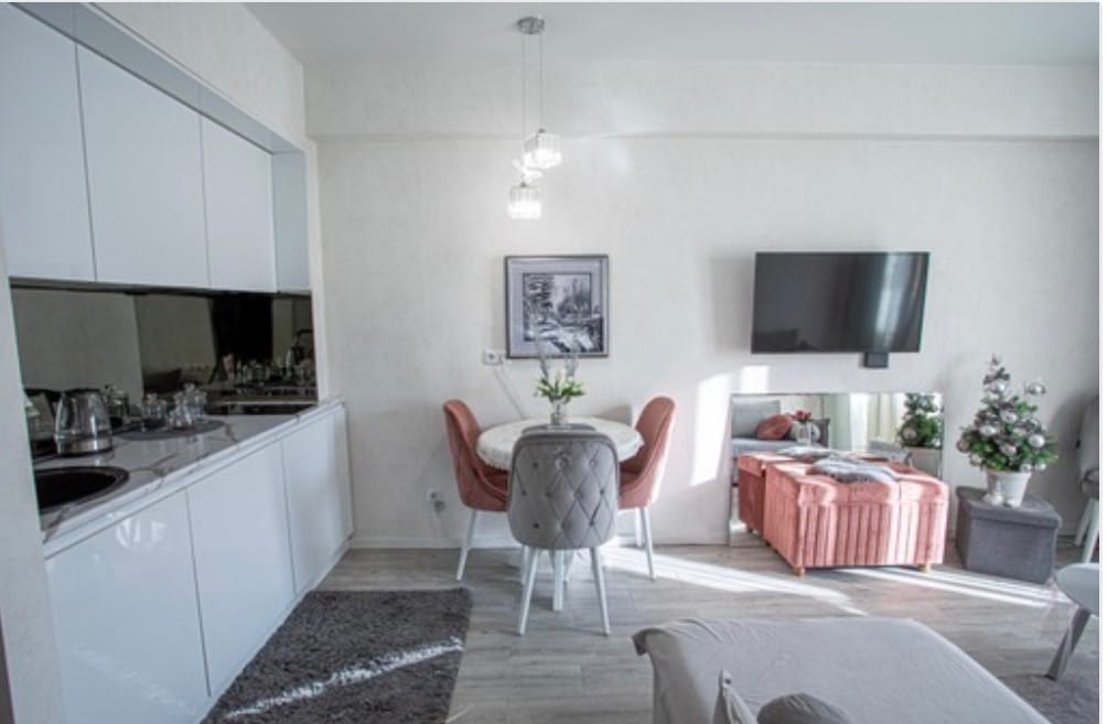 ●Park Residence complex 35 sq.m studio. Our Studio Triple Apartments offer Beds with comfortable 1 Queen+1 Sofa. ●The studio triple apartment also offers an ensuite bathroom with shower and toilet. ●Fully equipped kitchens make dining easy with full tea and coffee making facilities, fridge and freezer, microwave and washing machine. All cooking utensils and cutlery are supplied. ●Close to the apartments are supermarkets, pharmacies. ●The best holiday apartment in the center of Bakuriani.