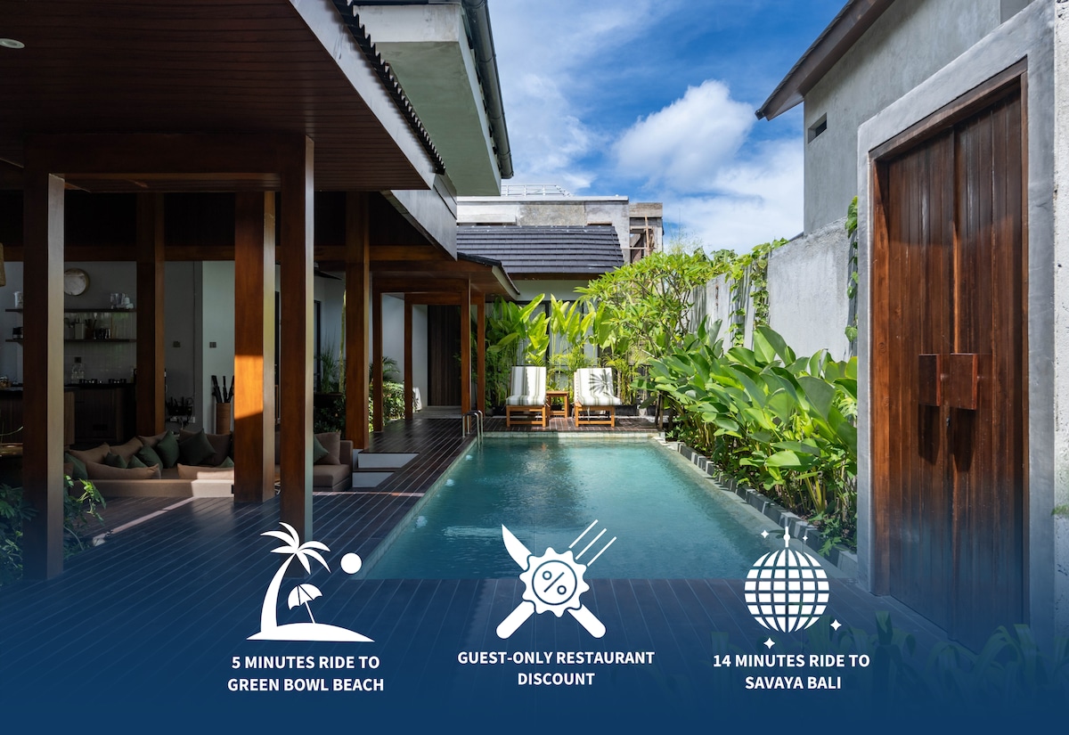 The Gladek offers a private retreat with a tranquil plunge pool surrounded by a jungle of trees with ocean and sunset views. Just a short walk will take you to Mana Uluwatu Resturant, Morning Light Yoga, The Istana Wellness Center, and 360 Move gym. Enjoy direct access to Uluwatu Beach via a quiet, less-traveled backroad that passes Istana and Uluwatu Surf Villas, ending at cliffside steps. This peaceful route leads to world-class waves & unforgettable sunsets ( sometimes a few cheeky monkeys).