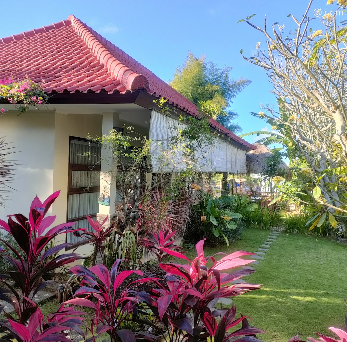 Relax with the whole family at this peaceful place to stay, With 5 seperate Villas with private living room, bathroom and kitchen. You can also access our outdoor sharing kitchen living room and dining. Feel free to cook your own breakfast and Meal,as we provided the cookware.A friendly warm and helpfull host. Experience the local area and easy access to tourism activity, less than 1km to restaurants malls and cafe also beaches, 5mins from the AirPort.