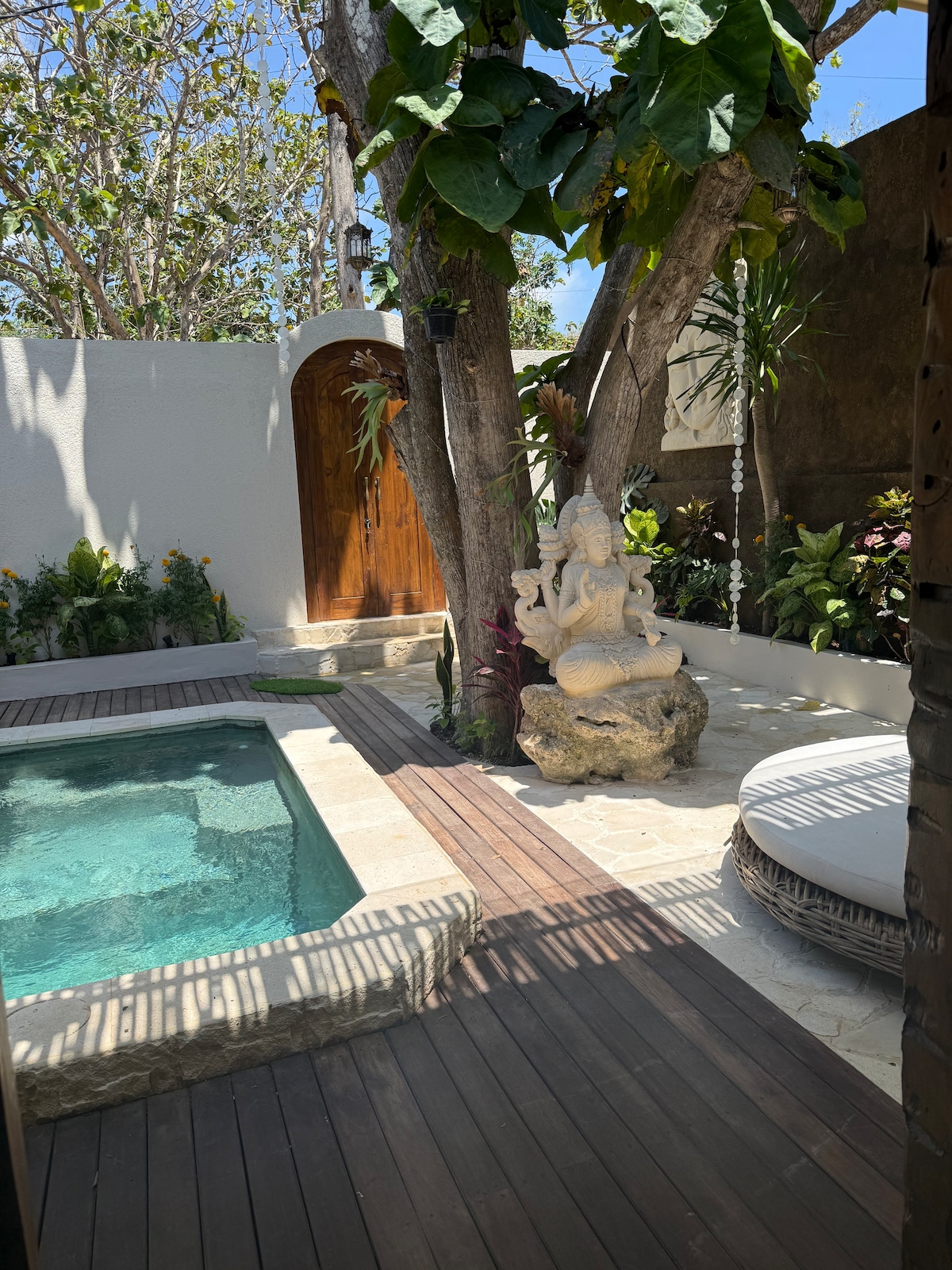 Located on the ground floor of a two-story complex with two independent units, is a fully independent mini-villa perfect travelers who value privacy and comfort. Set in a quiet residential area away from traffic and noise, it features a small private pool, a small kitchen, a beautiful bathtub, starlink and TV. The king-size bed is extremely comfortable and the space feels calm and cozy. Just minutes from Dreamland Beach and 5–10 minutes from the best cafés, restaurants and gyms.