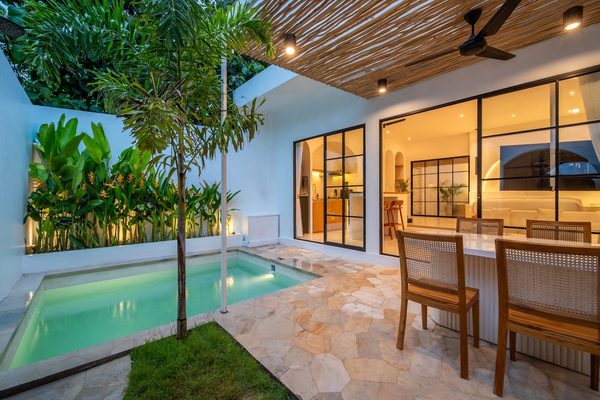 Escape to your private tropical sanctuary—designed with romance and relaxation in mind. Nestled in a serene part of Bali, this stylish one-bedroom villa blends Mediterranean-inspired curves with modern elegance, perfect for couples and honeymooners seeking a dreamy getaway. Whether you're waking up to soft sunlight through sheer curtains, dining al fresco under the stars, or enjoying a relaxing soak in your designer shower, every detail has been curated for comfort, style, and connection.