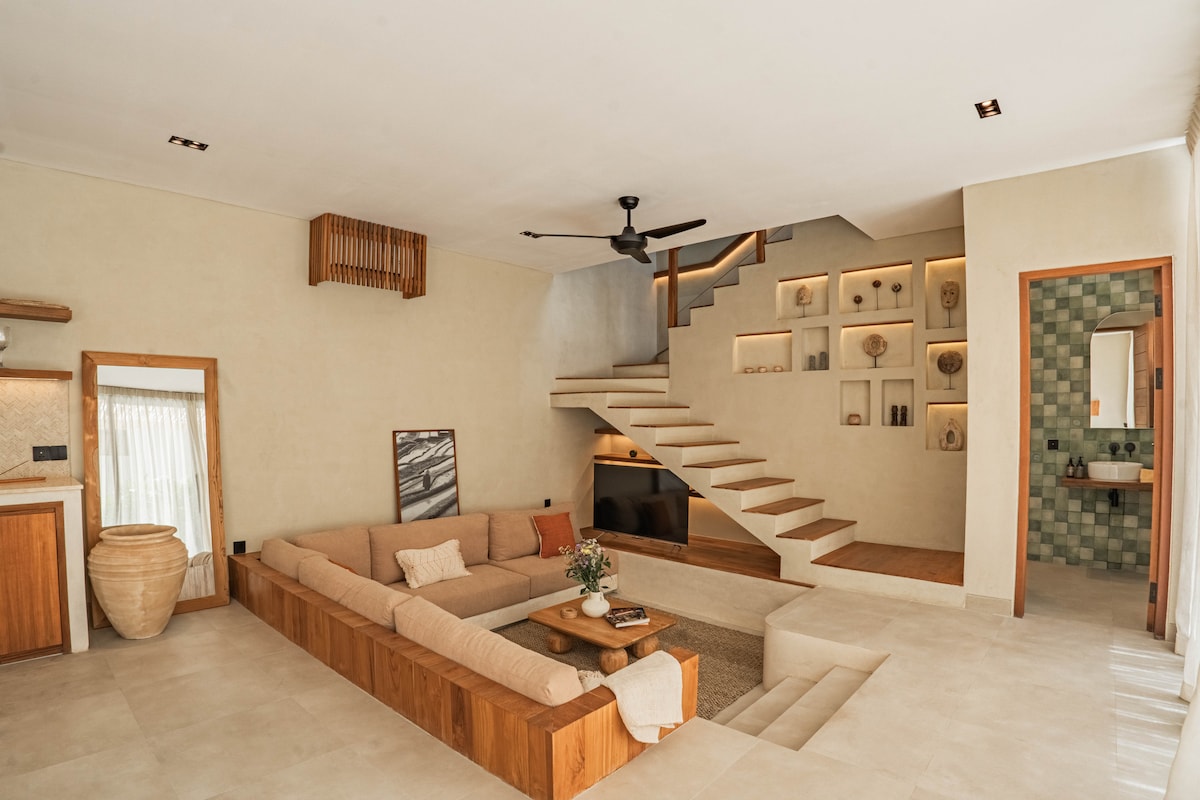 Brand-new, modern 1BR villa split across 2 spacious levels fully private & perfect for couples or solo travelers. Just a short walk to Dreamland Beach or El Kabron for unforgettable sunset vibes. There’s plenty of space to relax, unwind on the sunbeds, enjoy a cozy night in with large TVs, or cook up something delicious in the fully equipped kitchen. With Bingin and Uluwatu beaches just minutes away, this is your perfect base for beach days, surf sessions, and dreamy cliffside evenings.