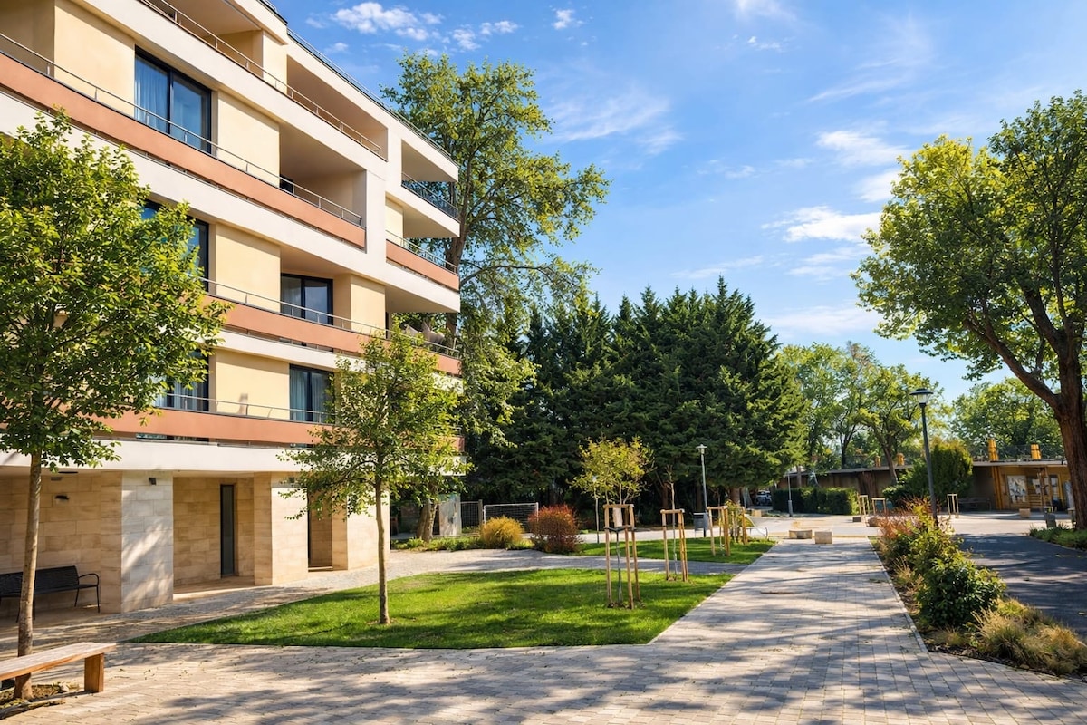 巴拉顿湖全景公寓,带湖滨区域和游泳池