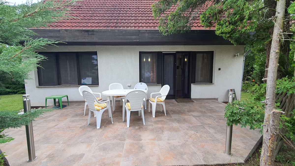 Explore the beautiful region around Lake Balaton from Hortenzia Apartment. This duplex apartment sleeps 5 people in comfort and makes an ideal base for family or friends who want to get out into nature or onto the lake. Access is through the garden and shaded terrace at the front of the house.