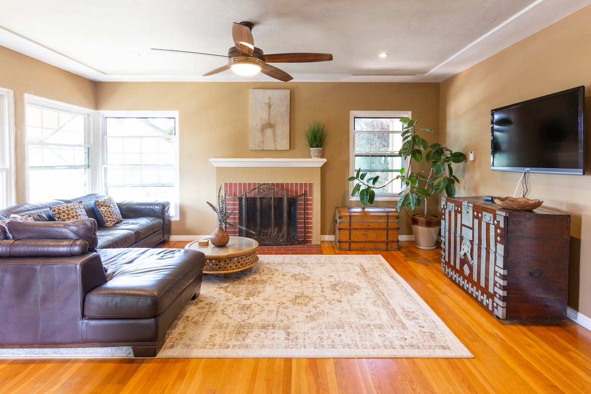 Bright • Walkable • Charming 2BR Craftsman retreat in San Diego's University Heights neighborhood, perfectly located between Hillcrest and North Park. Skylights and large windows fill the home with natural light, while the thoughtfully updated interior offers comfort and style. Enjoy a private fenced yard with outdoor seating, and walk to restaurants, cafes, and a grocery store just two blocks away. Perfect for couples, small groups, or business travelers exploring San Diego.