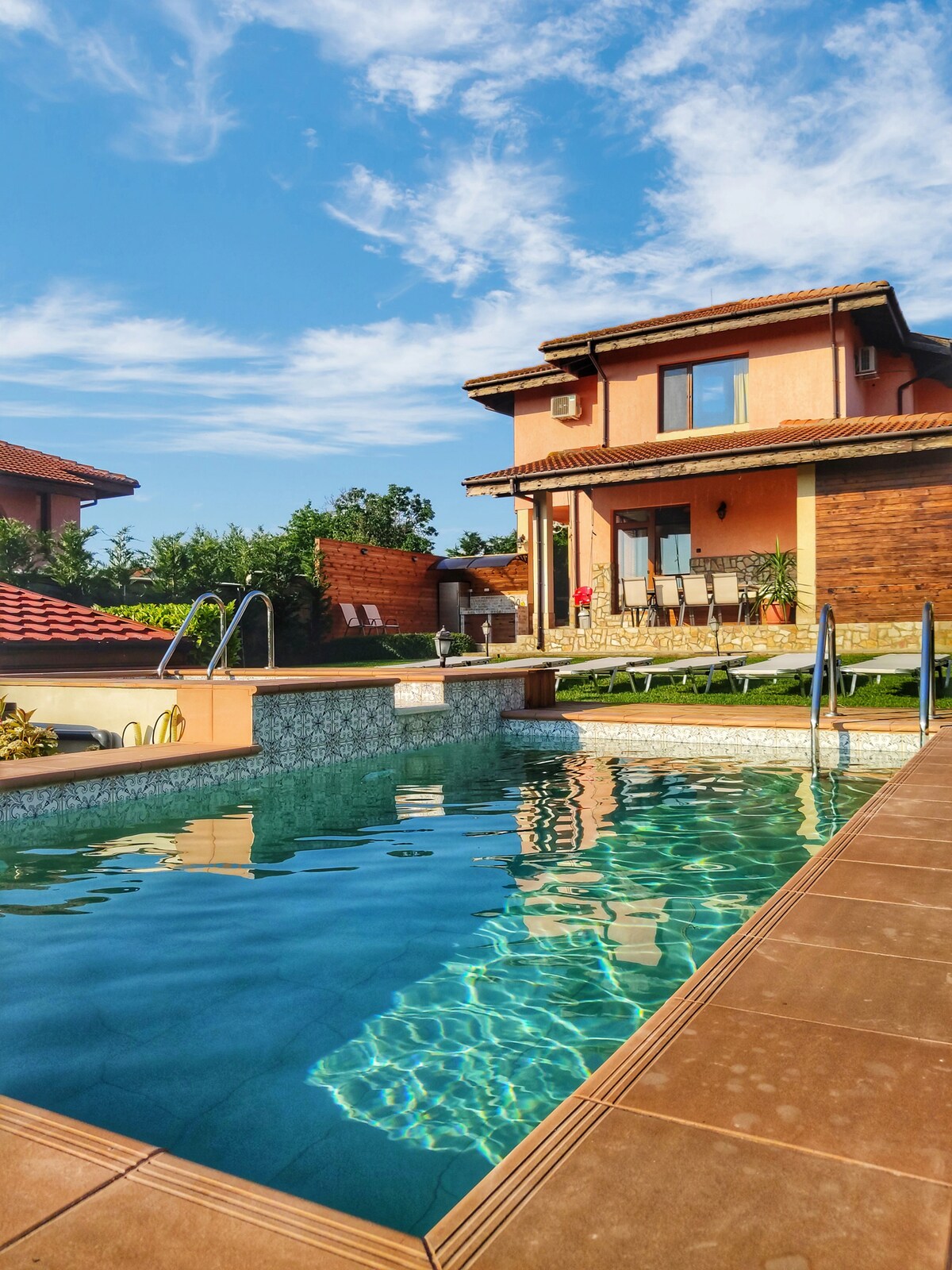 Villa Aura is a design 3 bedroom villa in the village of Rogachevo with a magnificent view to the sea and the nature reserve Baltata near Albena. It is a excellent starting point either to be on the sandy beaches of Kranevo and Albena, or to visit coast gems such as Cape Kaliakra or the town of Balchik. The villa is suited best for 6 adults and 4 children. ***New outdoor jacuzzi zone - season 2026***