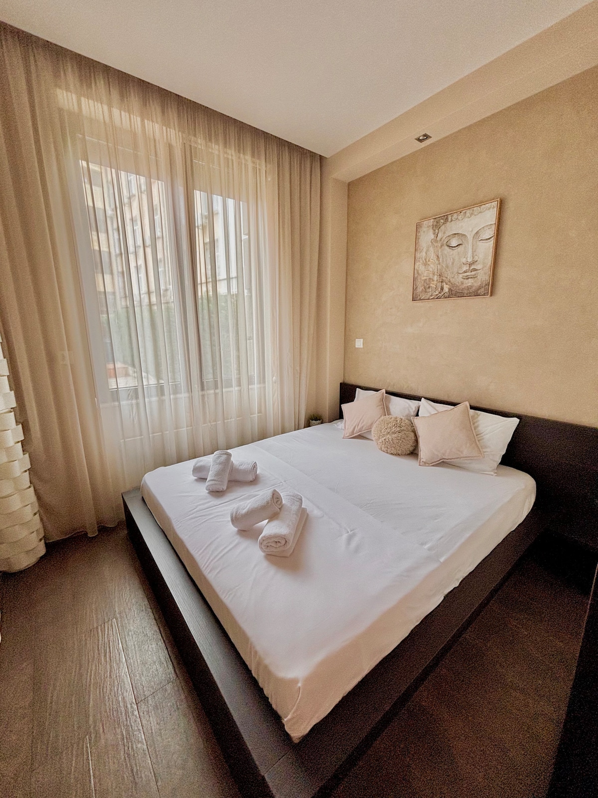 Sea Sunrise & Modern Luxury – Your Coastal Escape Immerse yourself in a modern seaside oasis where every day begins with a sunrise over the sea and ends with the calming sound of the waves. Located steps from Kabakum Beach, this apartment blends the coziness of a homey atmosphere, elegant design, and stunning sea views to create the perfect getaway. - 300m to Kabakum Beach, 680 m to Resort Sunny day - 26 min to Varna International Airport
