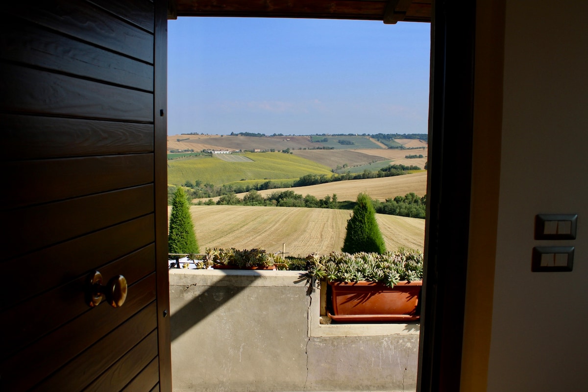 Casale di campagna che propone attimi di tranquillità in un'atmosfera serena, produciamo vino DOC e Olio EVO. Le Marche sono piene di meraviglie regalate da Madre Natura, il mare, le montagne, le vallate costellate di fiumi, le gole e i passi naturali dell’Appennino, o costruite dalla sapienza di artisti di fama. Ma le opere create dalla semplice mano del contadino non sfigurano certo nel panorama che si apre al tuo sguardo. "..che la passeggiata ti sia lieve, viaggiatore, e il cuore leggero.”