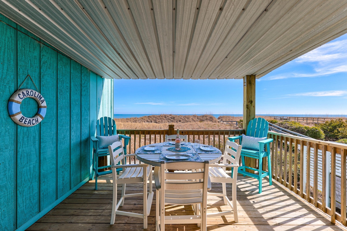 Charming 3 bed, 2 bath top level, ocean-front condo. Enjoy your coffee (or mimosas) on the oversized deck, soaking up the sun and taking in all that this private beach has to offer. For a closer look at the dolphins swimming by or the fisherman’s daily catch, you’re just a short walk to the sand from your door. Spend your days at the beach and your nights being soothed to sleep by the sound of the waves from your home. No matter the time of day or year, let Ocean Sounds calm you.