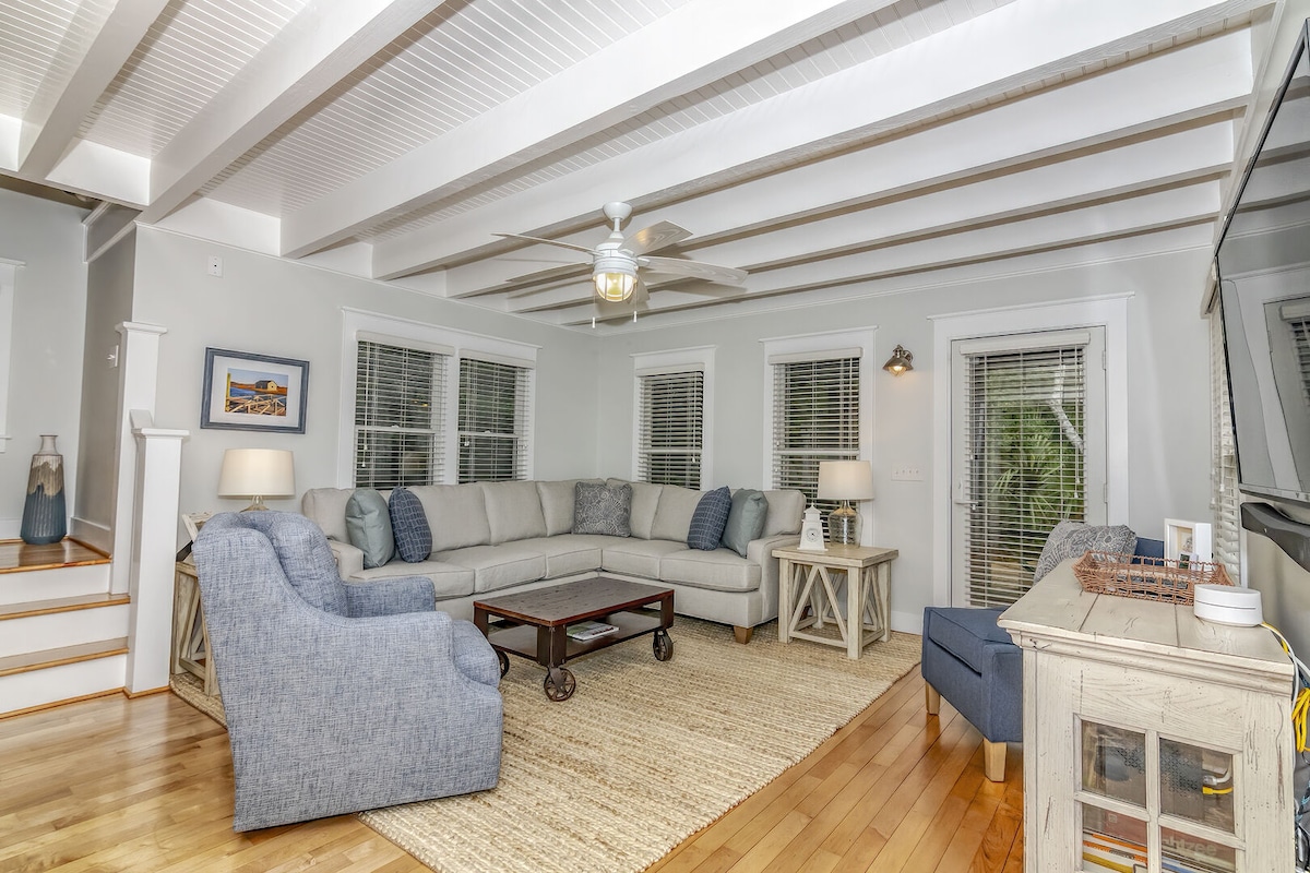 Welcome to A Bird House's Love Nest, a beautiful maritime forest home on exclusive Bald Head Island. This listing is the 1st floor which includes master bedroom and bath with garden jacuzzi tub, kitchen, living room, dining room, screened in back porch as well as golf carts and bicycles. Notes: This listing is not available around holidays. Jan 2026: There is a house being built nearby, crew hours are limited by contractor ferry and evenings were quiet.