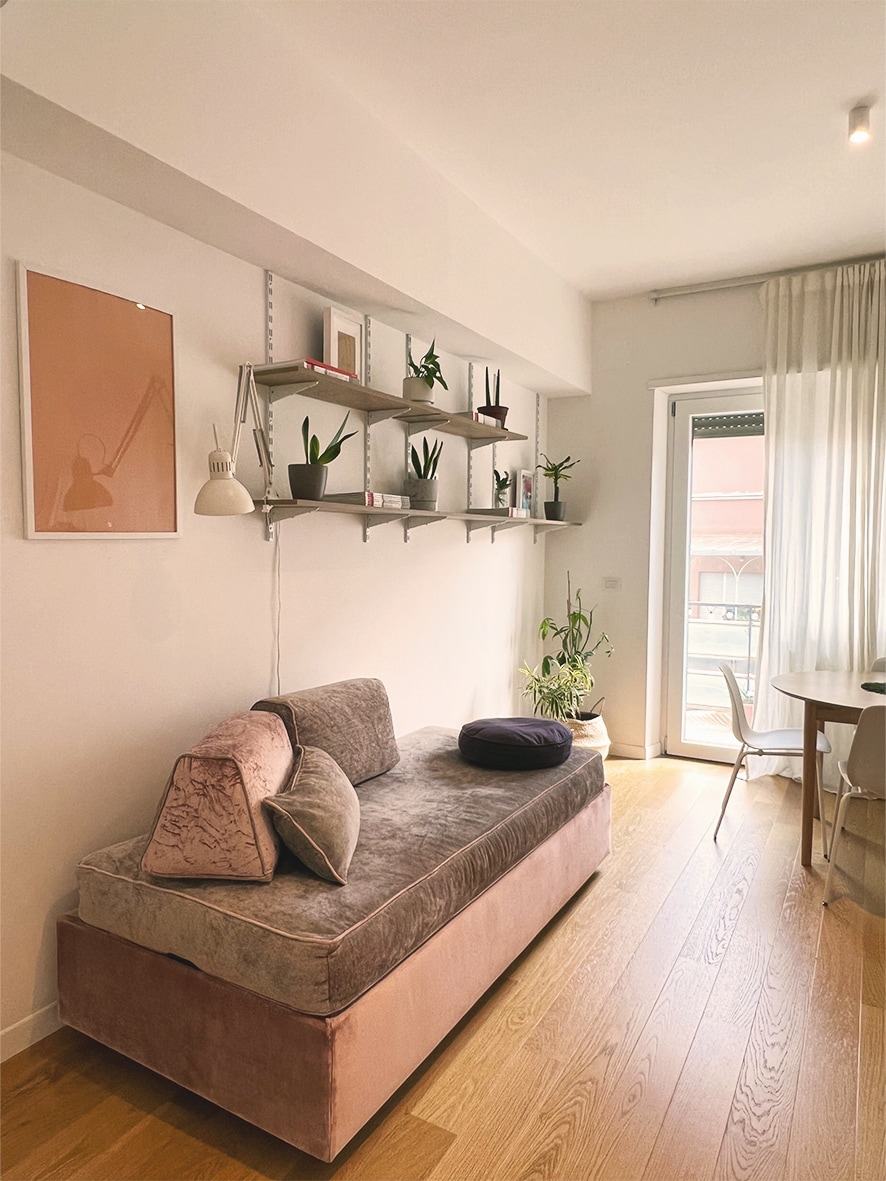A romantic, bright apartment, where every detail is designed to make guests feel pampered. The living room with open kitchen creates a convivial and harmonious atmosphere, ideal for relaxing. The bedroom offers comfort and tranquility, while the intimate and functional study is perfect for working or reading. The apartment also features a delightful balcony, ideal for enjoying breakfast in the morning or a romantic aperitif at sunset.