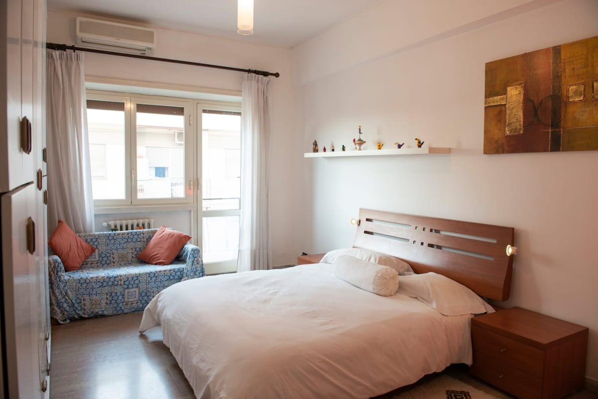 Apartment steps from the Vatican. Essential, fully equipped flat in a quiet and safe residential area, perfectly connected to the center. Ideal for couples, families, or small groups. 5 min from Metro A and 24/7 bus 46. Features a "Cloud" topper bed, sofa bed, Smart TV in the room, and full kitchen. Building with concierge and Self Check-in for your freedom. Special welcome gifts for adults and kids: feel at home away from the tourist crowds!