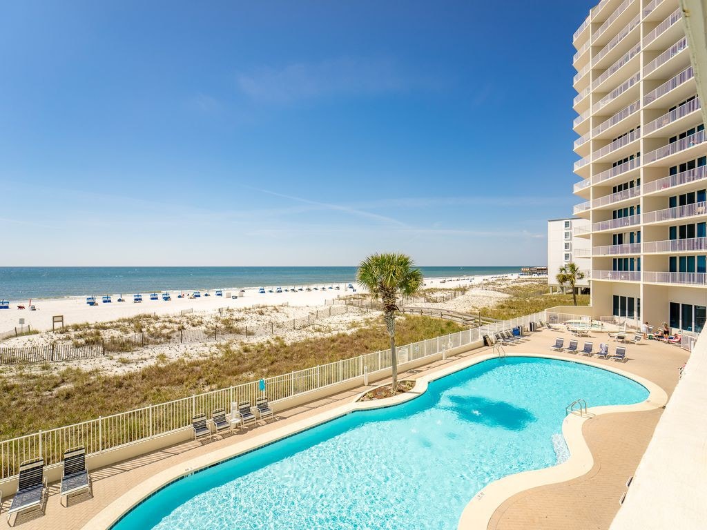 This prime beachfront condo offers unobstructed, panoramic ocean views in the heart of the Gulf Shores. The private balcony has a hot tub and BBQ, perfect for experiencing sunrises and frequent dolphin sightings. This 3BR+3.5BA high-rise offers resort-like amenities, including a Lazy River, indoor and outdoor pool, 4-story water slide, splash pad, gym, and tennis court. The Oasis at Turquoise Place is perfect for a family or group getaway!