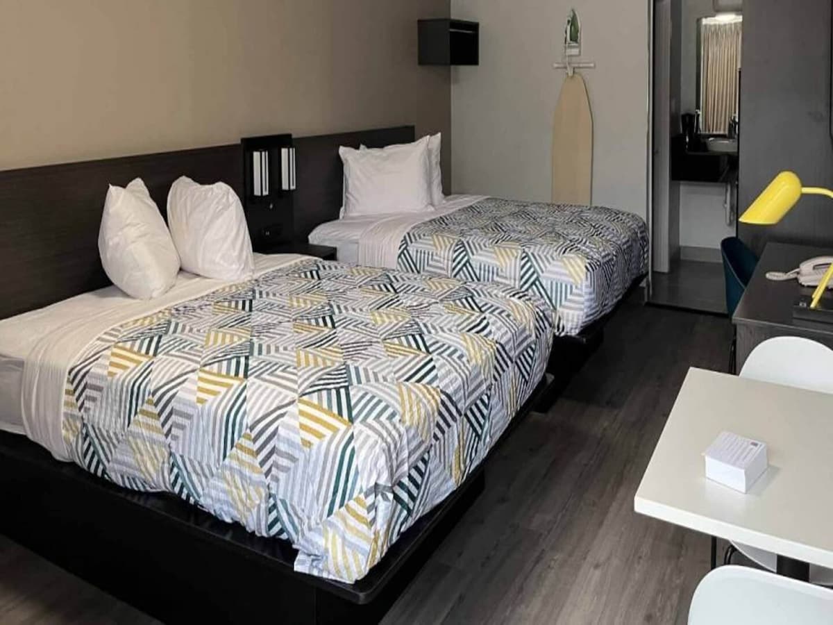 豪华加大双人床|免费停车和电视