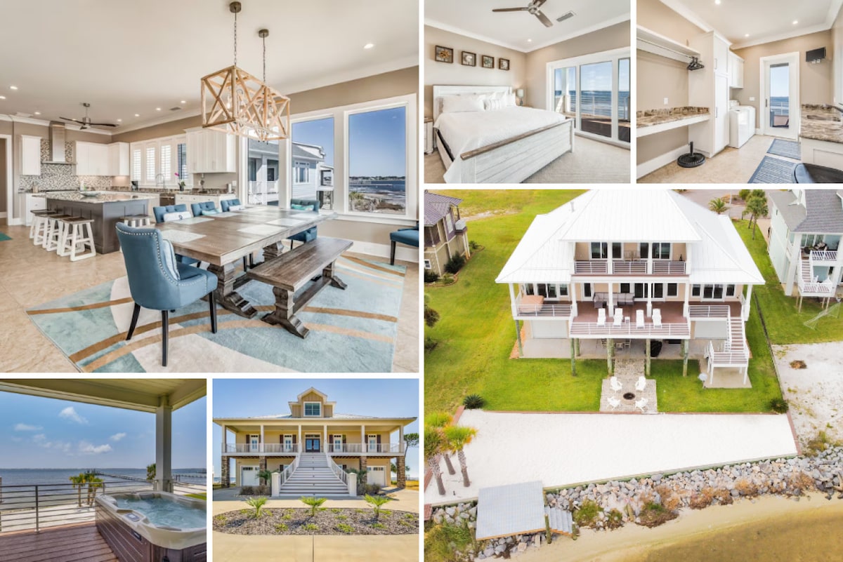 Top Amenities 🏖️ Private beach access with calm lagoon waters 🌅 Waterfront views from nearly every room 🛁 Hot tub, 🔥 fire pit, grill and deck platform for ultimate outdoor relaxation 🪑 Two spacious patios with lounges and dining spaces 🛏️ 5 bedrooms (sleeps up to 10 guests) 🍳 Fully equipped kitchen + large dining area for group meals 🌐 Free Wi-Fi throughout the home 🏝️ Close to local restaurants, attractions & shopping