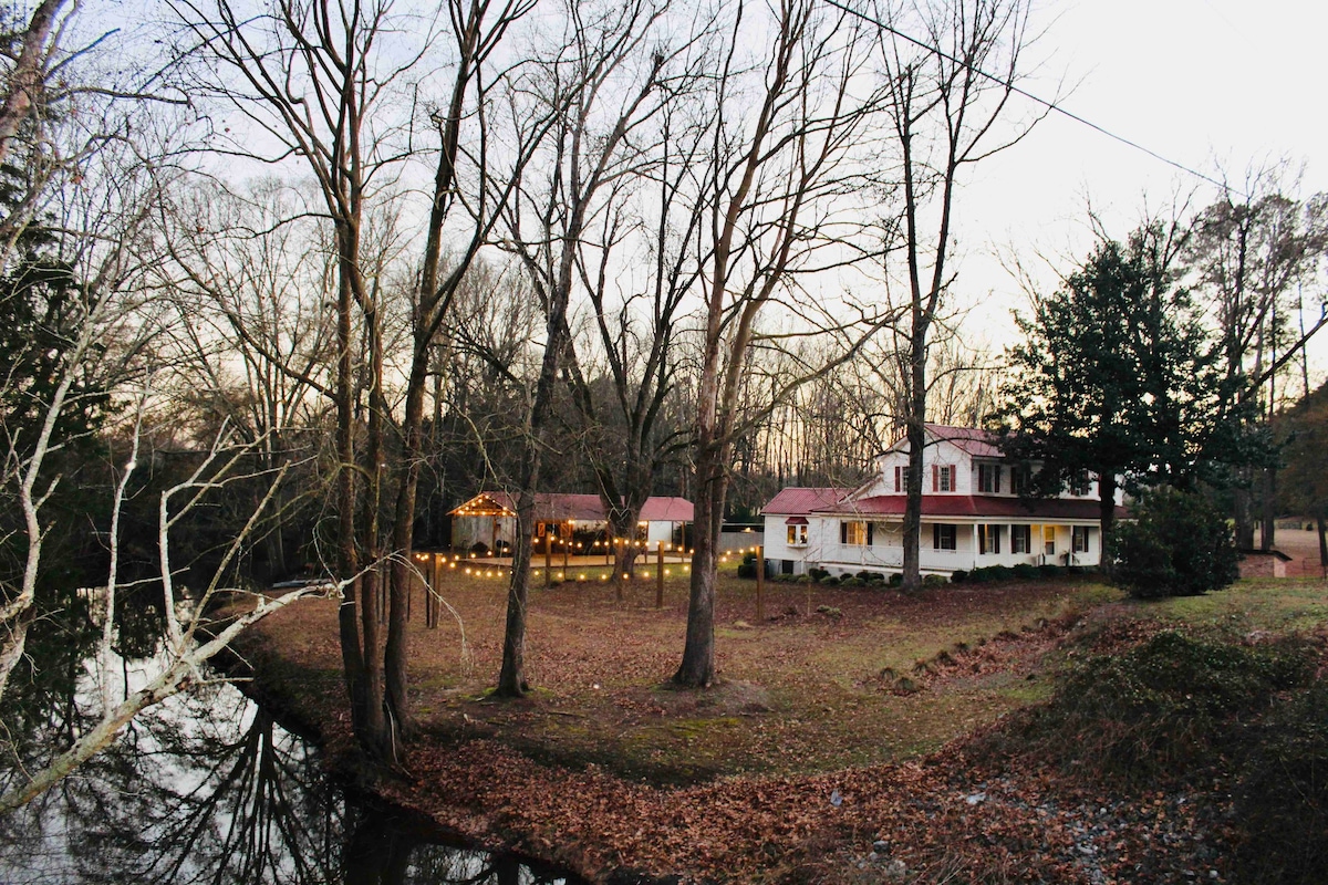 O’Quinn’s Mill is located 9 miles from downtown Milledgeville and Georgia College! O'Quinn's Mill was built in 1807 by Colonel Thaddeus Holt. The farmhouse is across the road and overlooks the grist mill, 18 acre pond and Town Creek. We hope you'll love the location as much as we do, appreciate the history, feel the magic there, and use it to become part of your family’s memories. *please note this is a 3 bedroom 1.5 bath home. If you need more than 1 shower then this home will not be suitable