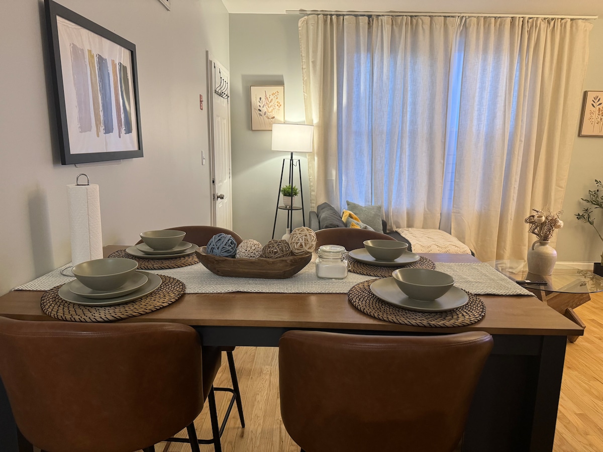 Its coziness will make you feel at home the second you step in. This cute ground floor 280 sq ft Tiny Guest Suite is Fully furnished and nicely decorated - it comes with anything you can possibly imagine. It consist of 1 bedroom 1 bathroom & a kitchen/dining/living room area Rooms' sizes: Bedroom: 10ft x 7 1/2ft LR kitchen DR area: 19ft x 10ft Bath: 40" x 80" Given how close it is from everything - It is perfect for guests who plan on commuting to the city by train or move around by Uber.