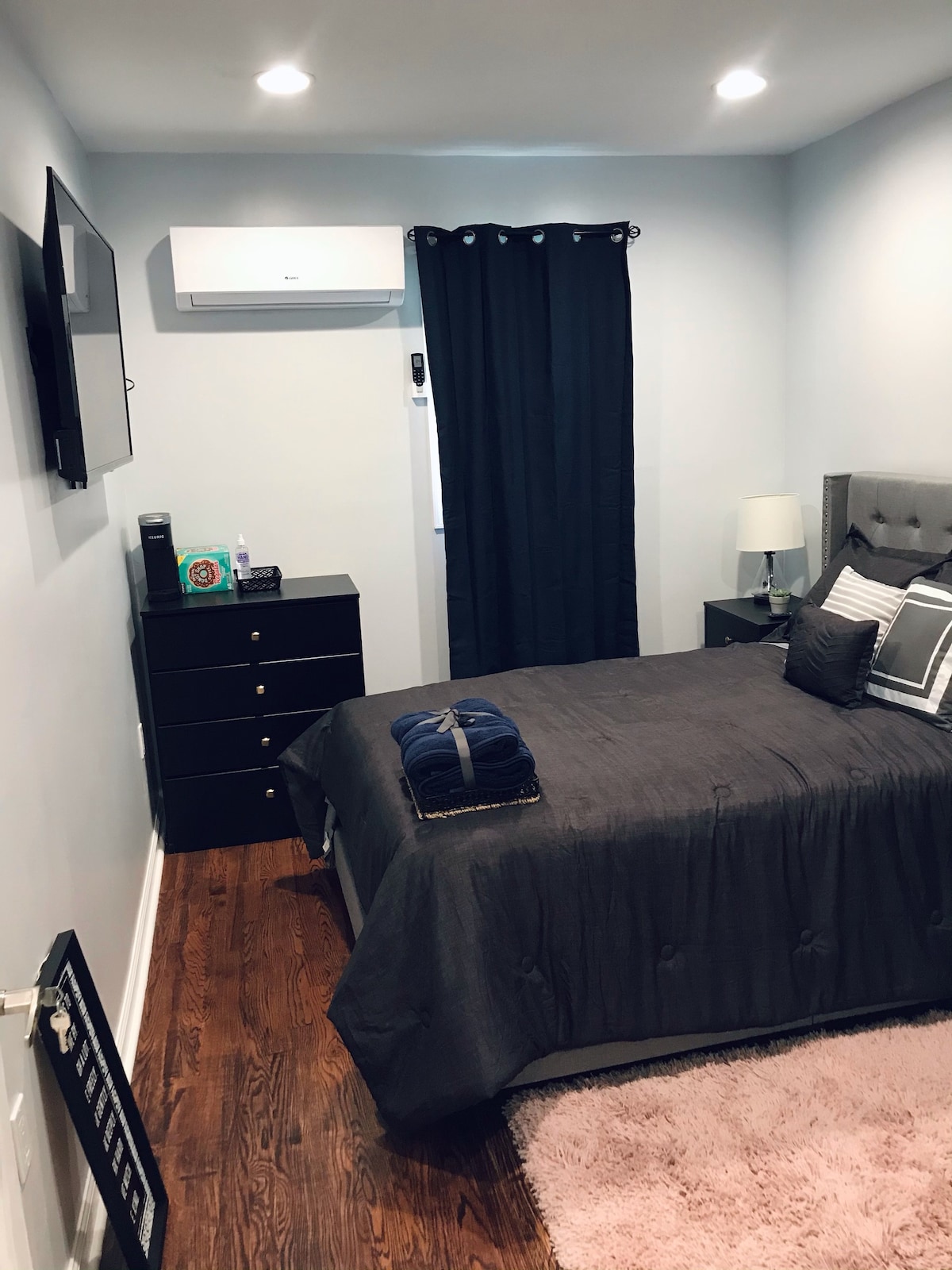 Its coziness will make you feel at home the second you step in. This cute ground floor 280 sq ft Tiny Guest Suite is Fully furnished and nicely decorated - it comes with anything you can possibly imagine. It consist of 1 bedroom 1 bathroom & a kitchen/dining/living room area Rooms' sizes: Bedroom: 10ft x 7 1/2ft LR kitchen DR area: 19ft x 10ft Bath: 40" x 80" Given how close it is from everything - It is perfect for guests who plan on commuting to the city by train or move around by Uber.
