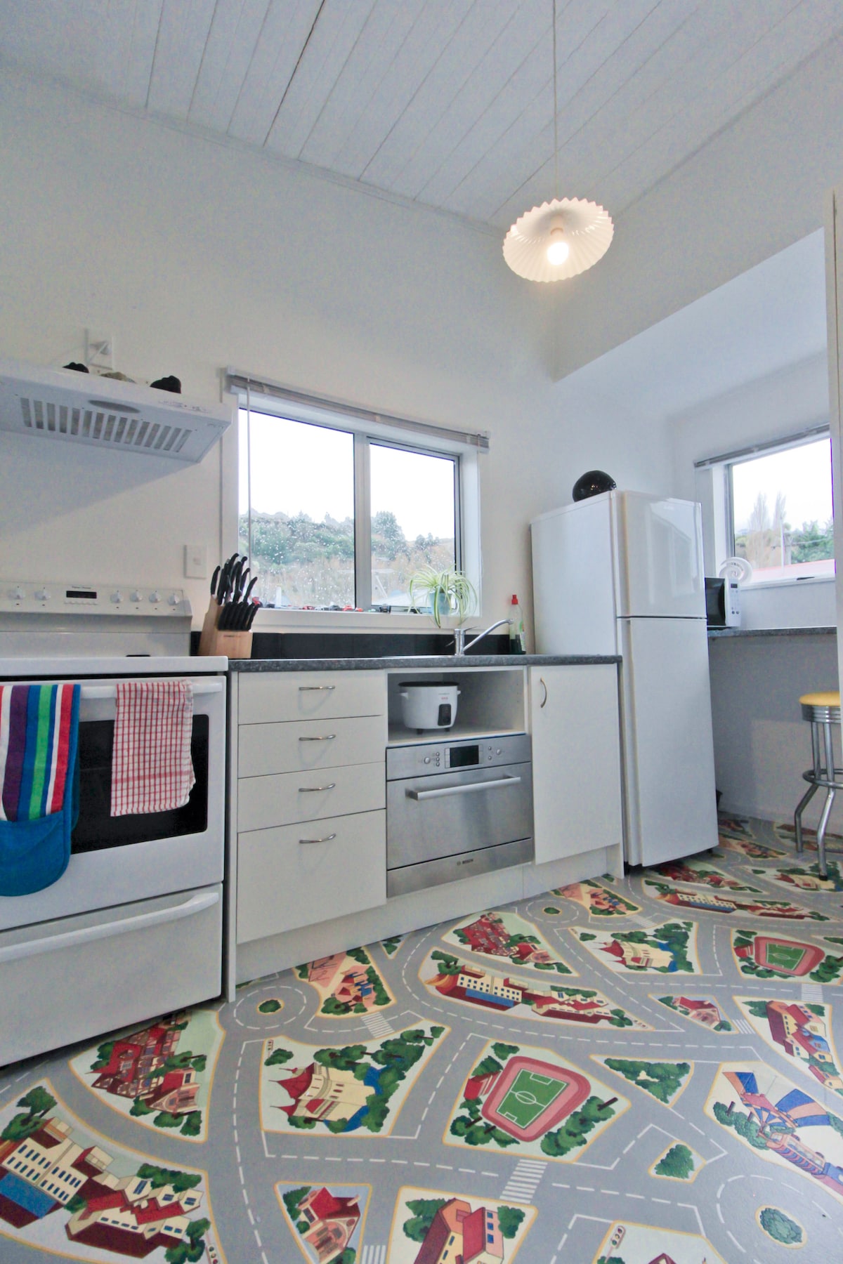 Relaxing, comfortable family home with easy access, conveniently located to Baldwin St and a 5 minute drive to Forsyth Barr Stadium, Hospital, University, Gardens & City Centre. A quick stroll to a Japanese restaurant and Dunedin's popular Blacks Road Grocer for great coffee & gifts. Comfortable & warm, well stocked house on a flat section with ample free street parking. It has a secure garden for the children & a fantastic family sized kitchen with doors opening up to the sunny garden 😊