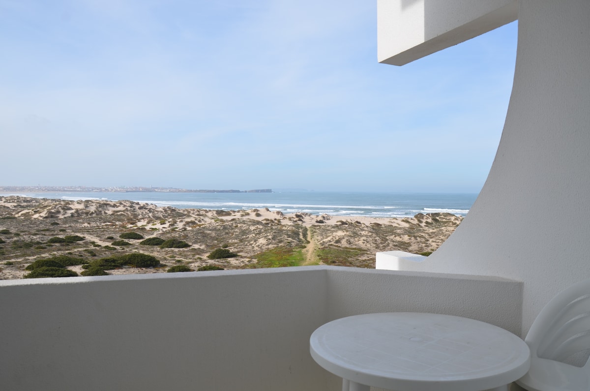 2 Bdrm apartment with a panoramic view of Baleal, You can see the beach, Berlengas Island, and Baleal Island, and check the waves in Baleal, Prainha and Lagide from your bedroom or from the couch or balconies. Is located on the first line from the beach in Sol Village 1 tower. The beach is just across the street. Near by all beach bars, surf shops, restaurants and mini markets. Perfect place for surfing holidays or relaxing holidays. The place has two ACs and a electric heater to keep you warm