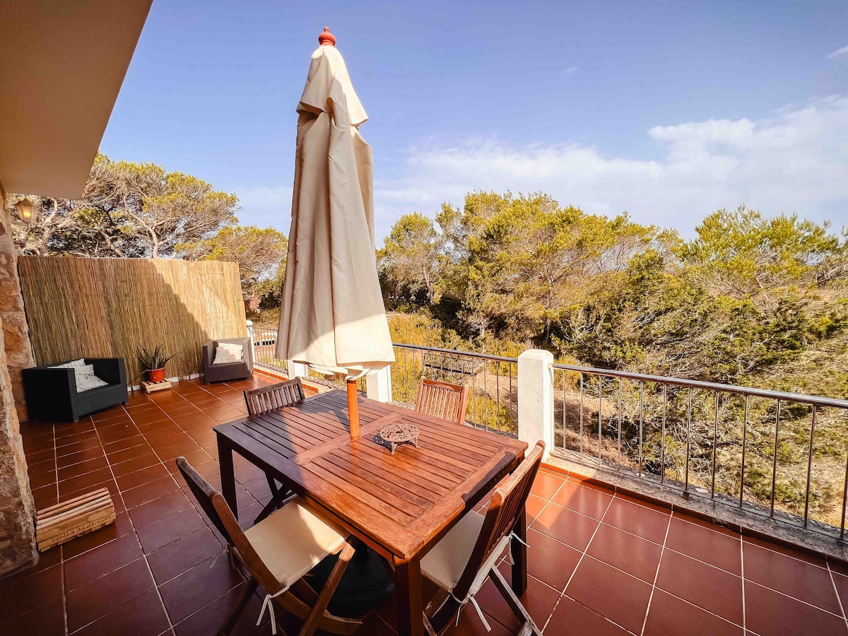 Apartamento muy luminoso y cuidado, en un entorno con vistas al campo menorquín. Aparcamiento justo delante del alojamiento. A cinco minutos en coche de la ciudad de Mahón . A 3 minutos en coche,del puerto de Mahón, en donde podrás deleitarte con la gastronomía menorquína. Se permite utilizar las zonas comunes como jardín y piscina.