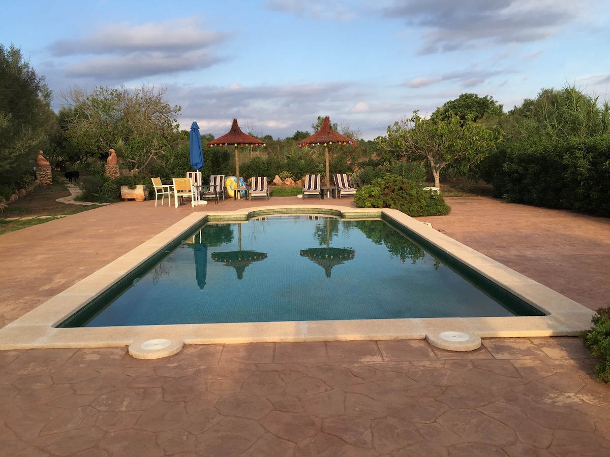 Nur für Erwachsene!! Tolles, freundliches, Appartement für zwei Personen auf unserer Finca in Llucmajor, mitten in einer wunderschönen Gartenanlage mit Pool. Zentral gelegen mit kurzen Wegen zu den schönsten Stränden von Mallorca, zu Palma und anderen Ausflugszielen. Die Busstation Llucmajor/Son Noguera ist 7 Gehminuten von uns entfernt. Von Mai bis Oktober fährt auch ein Flughafenbus. Die hier erhobene Touristensteuer ist im Preis inbegriffen.