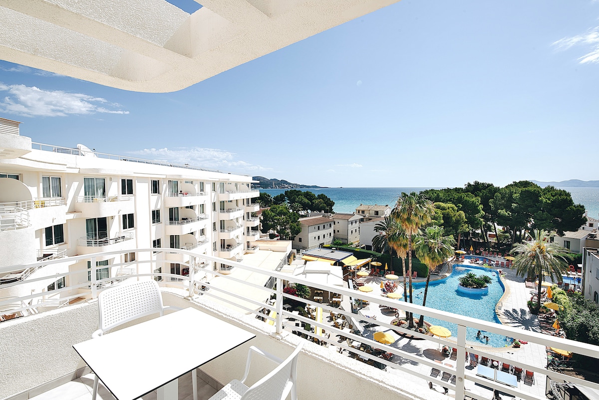 Voramar 47 is a stunning first-floor apartment on the Pine walk, boasting panoramic views of the Bay of Pollença. With direct access to the beach, shops and restaurants, this spacious 3 bedrooms, 2 bathrooms apartment with big balcony offers seaside living at its finest. Voramar 47 is an ideal choice for families and groups of up to 6 people seeking year-round holidays on the beautiful Pine walk.