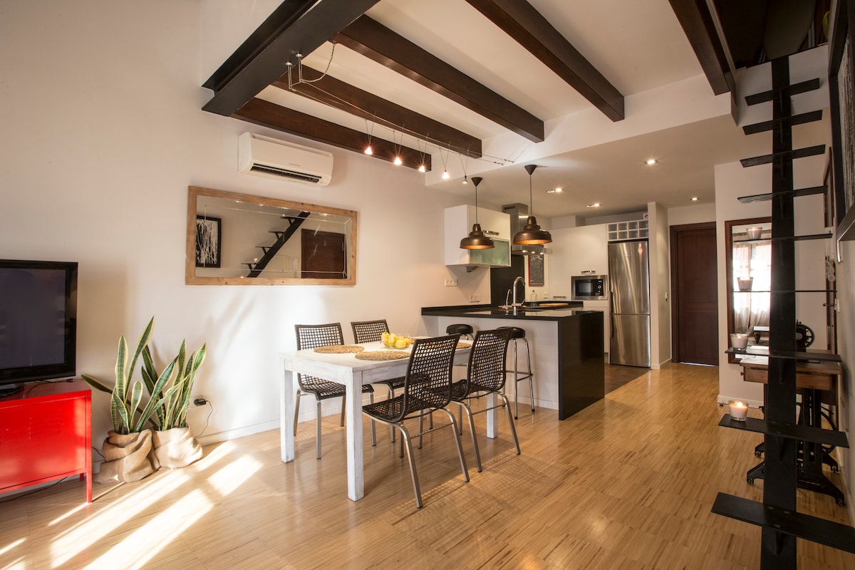 Charming and comfy design top floor ideal for couples, totally renovated and ideally situated right in the heart of Old City. Just 5 minutes walking from the island´s main public transport station . There are 2 more units in the same building, all belong to Poc a Poc Suites turismo interior. Completely equipped: powerful and silent ac, heating, wifi, tv-dvd, washing-dryer machine, dishwasher, oven, microwave, coffee machine, kettle, cooking equipment, hairdryer, iron +ironboard...all you need!