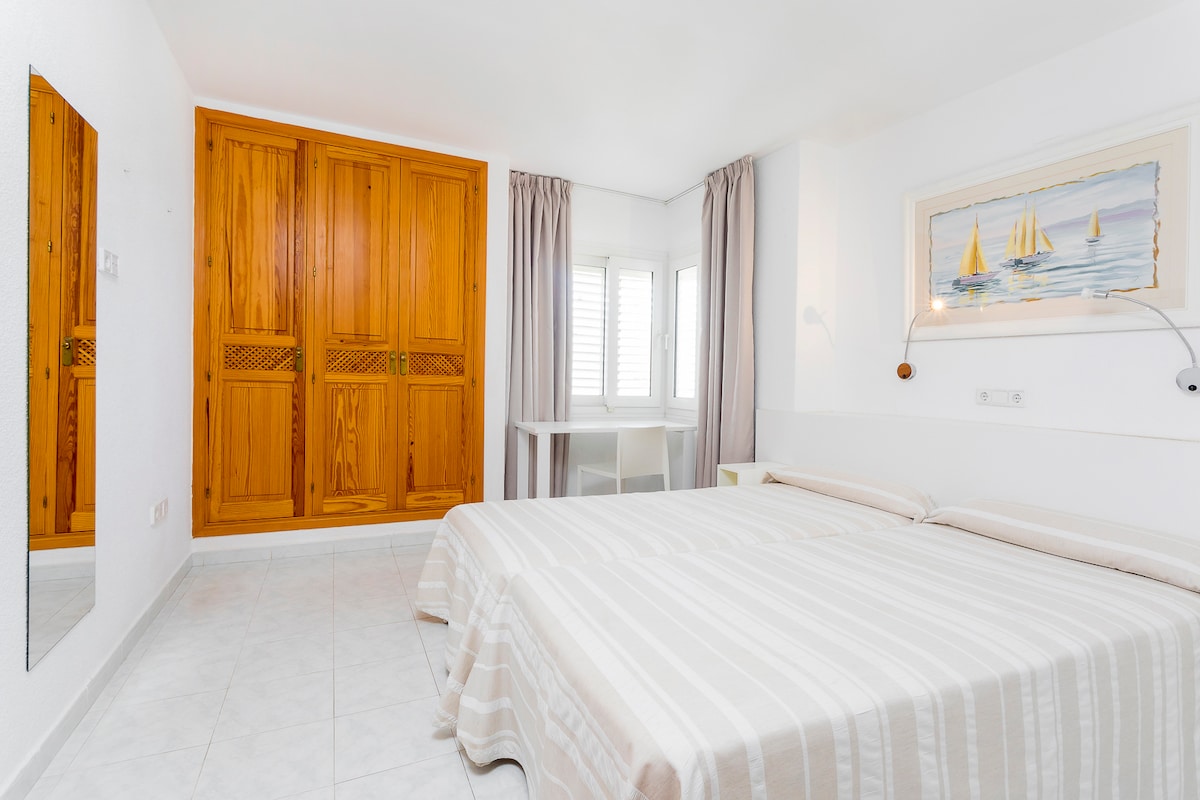 A 150 metros del mar, encontramos estos apartamentos, ideales para disfrutar en familia o con amigos, para 4/5 personas. Goza de una de las ubicaciones más privilegiadas de la isla. Constan de 2 dormitorios, un baño completo, un salón de estar con sofá cama, una cocina semiamericana completamente equipada y una agradable terraza. Todos ellos disponen de WIFI gratuito de alta velocidad, aire acondicionado, televisión y están provistos con todo lo necesario para poder disfrutar de sus vacaciones.