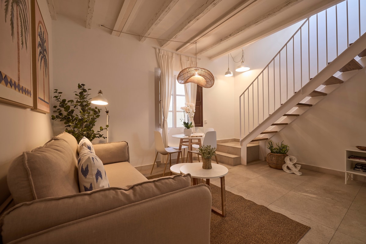 Charming and comfy design top floor ideal for couples, totally renovated and ideally situated right in the heart of Old City. Just 5 minutes walking from the island´s main public transport station . There are 2 more units in the same building, all belong to Poc a Poc Suites turismo interior. Completely equipped: powerful and silent ac, heating, wifi, tv-dvd, washing-dryer machine, dishwasher, oven, microwave, coffee machine, kettle, cooking equipment, hairdryer, iron +ironboard...all you need!