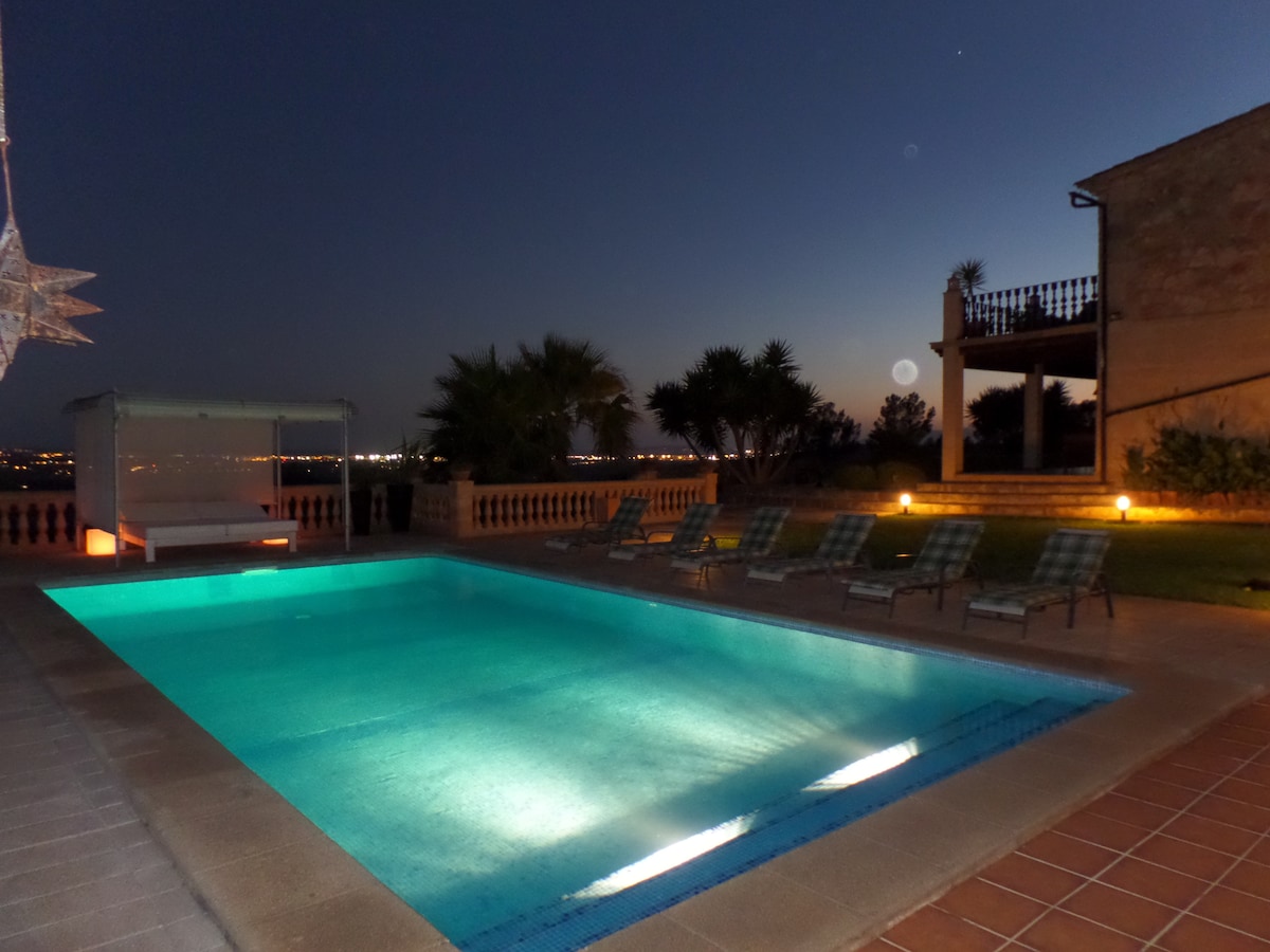 Increíbles vistas y actividades en familia. Cerca de Palma y playas, rodeados de naturaleza y tranquilidad. Ideal para su relax, en la zona exterior piscina, solárium ,cama balinesa y jacuzzi. y para los más pequeños con zona infantil. Cuenta con tres amplias habitaciones con vistas a la piscina , montañas y bahía de Palma, dos de ellas con baño en suite y baño independiente con sauna. El uso de todas las dependencias descritas será de uso exclusivo de lo huéspedes mientras dure la estancia