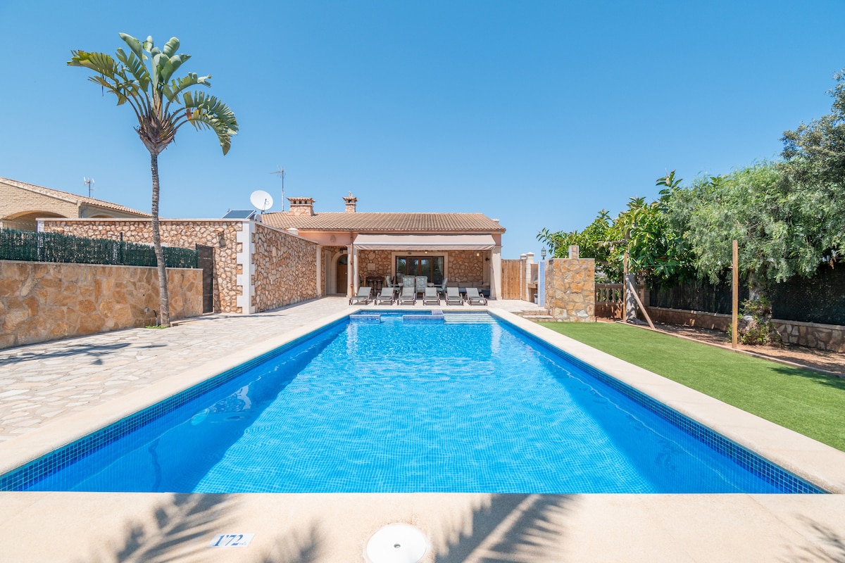 En la zona más tranquila de esta encantadora aldea turística, antiguo pueblo de pescadores, muy cerca de la playa del centro. La mejor zona de Mallorca sin dudarlo, una preciosa playa de arena blanca de unos 5 km de largo y un paseo marítimo de unos 4 km con muchos restaurantes. A pocos metros del parque natural de S’Albufera Rodeado de Pinar, arena y playa. Perfecto para practicar deporte, ciclismo, natación, deportes náuticos, etc