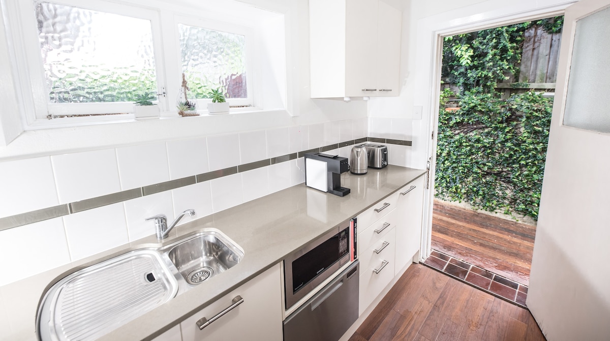 This one bedroom compact garden unit is situated beneath our family home. It’s only a 10 minute level walk to the beach or 15-20 minutes to the centre of Manly. Unlimited street parking is usually available, although more difficult in the winter soccer season with sports field across the road. The unit is equipped with an ensuite bathroom, one bedroom with one queen and one single bed, a living area with kitchen. Enjoy your own private outdoor area in a beautifully landscaped garden and lawn.