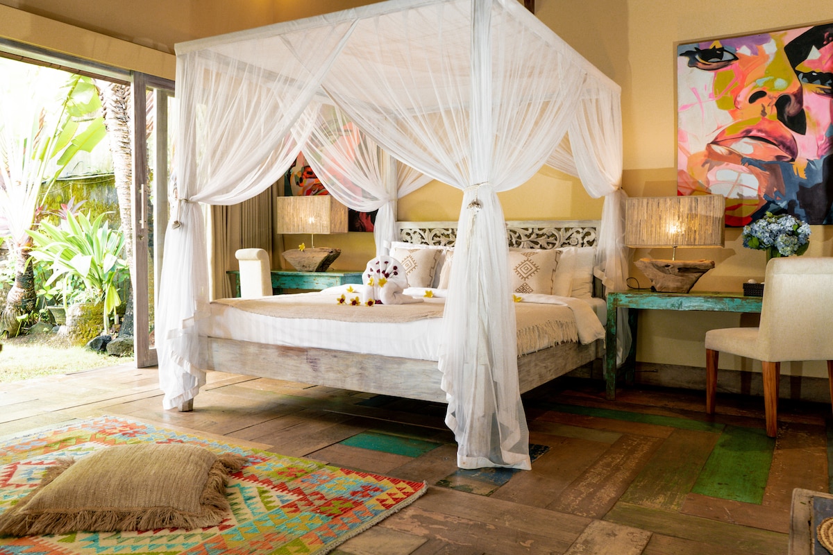 *WE HAVE AMAZING WIFI (50mbps ++) AND 4 BEAUTIFUL PROPERTIES ON SITE. CLICK ON MY PROFILE TO SEE THE OTHER 3 HOUSES IN CASE THIS ONE IS BUSY DURING YOUR DESIRED DATES* Have you ever slept in a work of art? From the artisans of Java to the farmers of northern Bali, this stunning 50-year old hand carved Gladak rests now in Sunset Sala. Made completely of teak wood, no nails were needed for the reconstruction of this unique home- its hand carved walls skilfully slotted together.