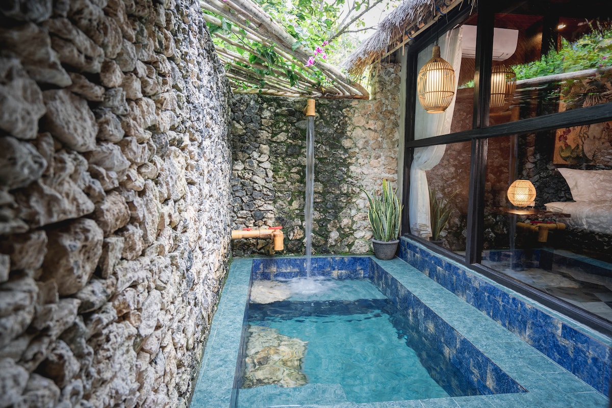 Katana Villa's "Dragon’s Nest" is the perfect place for a family or honeymoon couple to dream with spectacular OCEAN and Mountain VIEWS. This dragon nest has a top rated pool for children! By far one of the most unique vacation villas in Bali with a double level pool, waterslide, pool cave and a DRAGON'S NEST as the upper pool. This cottage has one king bed and comfy mattresses for an additional three.