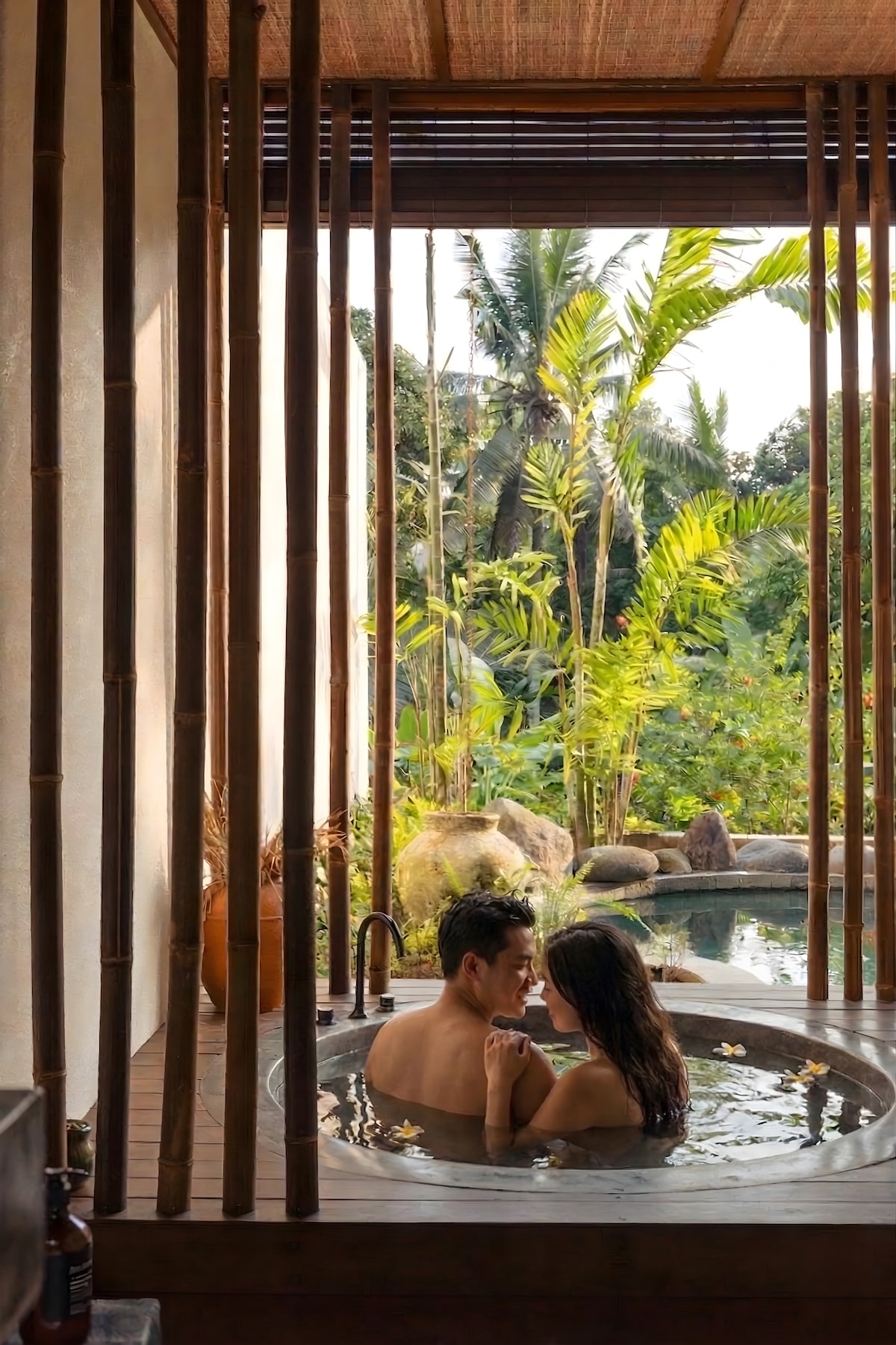 Experience your 130m² villa blending Japanese minimalism, Peranakan heritage, and Balinese warmth. Enjoy complete privacy with cozy living room, pantry kitchen, 2 bathrooms with bathtubs, and private pool with loungers. The only shared spaces are our serene garden featuring a majestic tree beside a traditional Balinese prayer stone. Perfect for up to 3 guests. Every detail enhances your connection to Bali's serene environment.