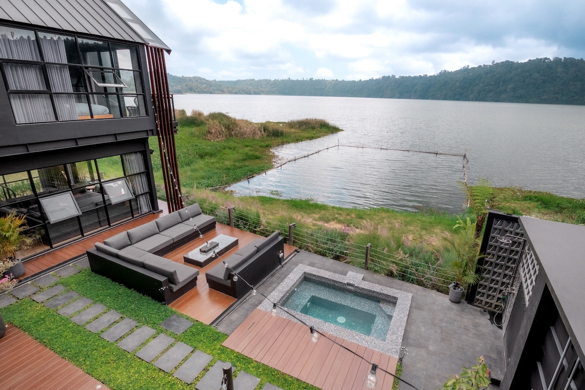 Four bedroom cabin that we've renovated applying a ski chalet concept. Each suite has a copper bathtub looking out on protected forest. The views are incredible with panoramas of Lake Buyan, Handara Golf Course, and steep mountains in the background. At 1,400 m. above sea level, we're blessed with eternal spring weather in the day time with chilly nights. Wake up early morning to the smell of conifers and take a walk to see jungle fowl, deer, civet cats, and a wide variety of birds.