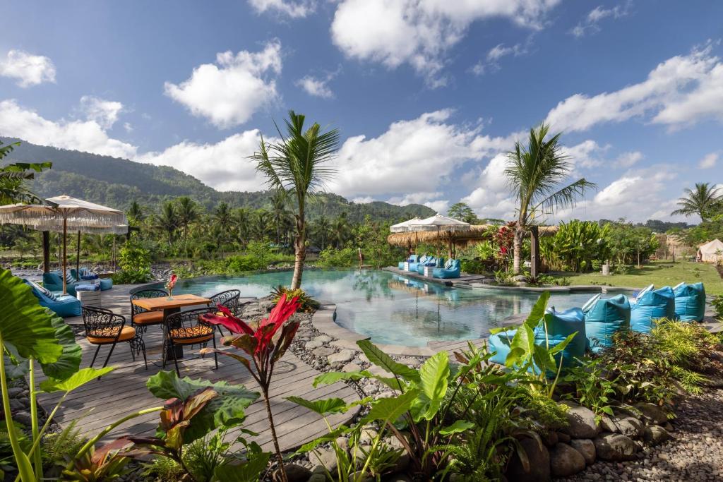 The New of luxury pool tent room in Sidemen offers a premium glamping experience with a modern design. Featuring a spacious king-size bed, this tent provides a comfortable and private retreat surrounded by nature. Enjoy your own private pool while taking in the beautiful views of the rice fields or garden. The tent's design combines luxury and simplicity, providing a tranquil environment to relax and unwind.